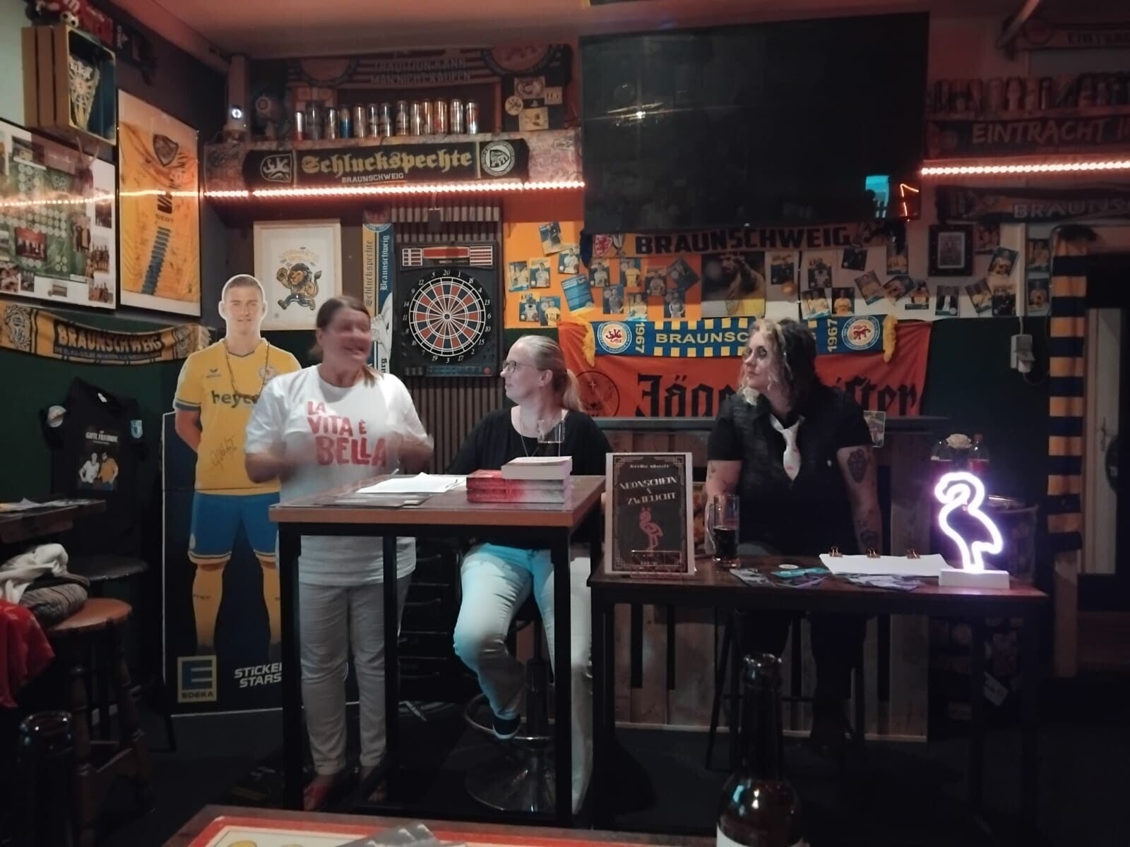 Im August 2025 erschien endlich mein neues Buch "Neonschein & Zwielicht". Außerdem gab es zwei Lesungen, zum einen im SchmidtTerminal in Wolfenbüttel, da noch aus "Revolver im Strumpfband". Vielen Dank an Walburga Schmidt. Die andere Lesung war die Premiere aus "Neonschein...." gemeinsam mit Anna Dugall unter dem Motto "Scottish Thrill meets American Noir" in Yvonnes Kiosk in Braunschweig. Die Leseflair Buchmesse in Braunschweig stand auch noch auf dem Programm. Daher hier ein kleiner Fotorückblick: